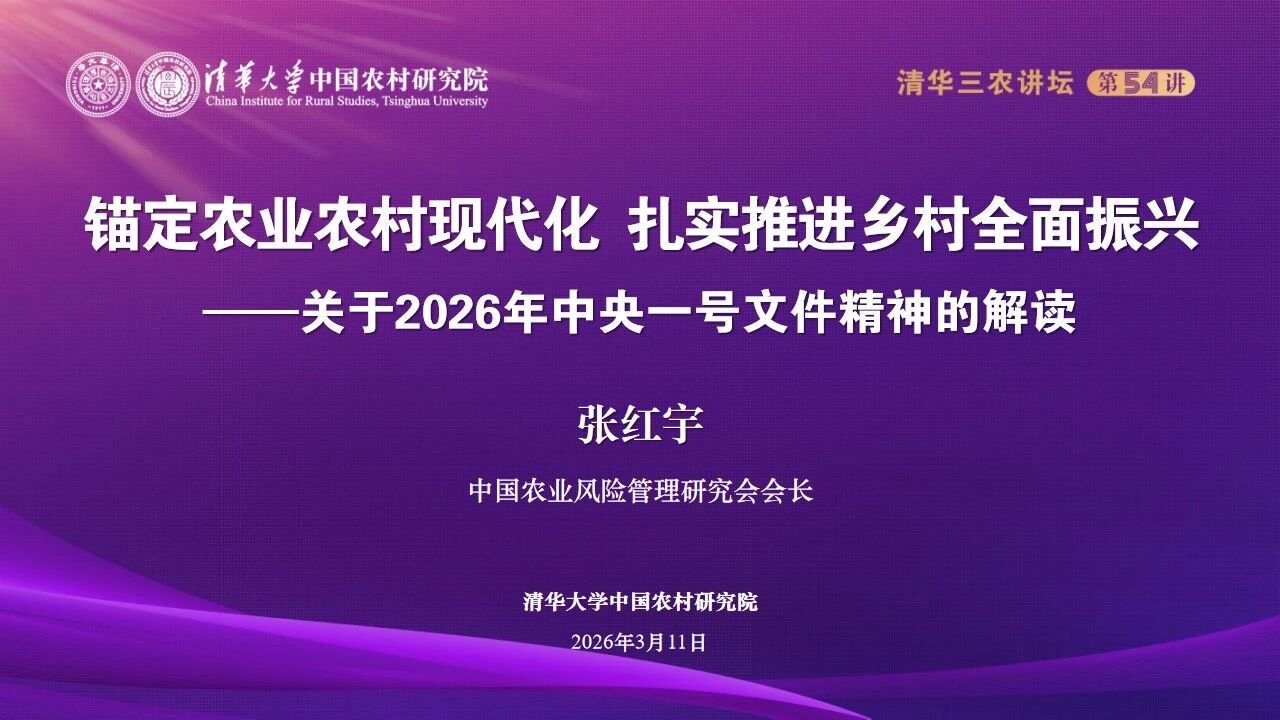 张红宇主讲清华三农讲坛 解读2026年中央一号文件